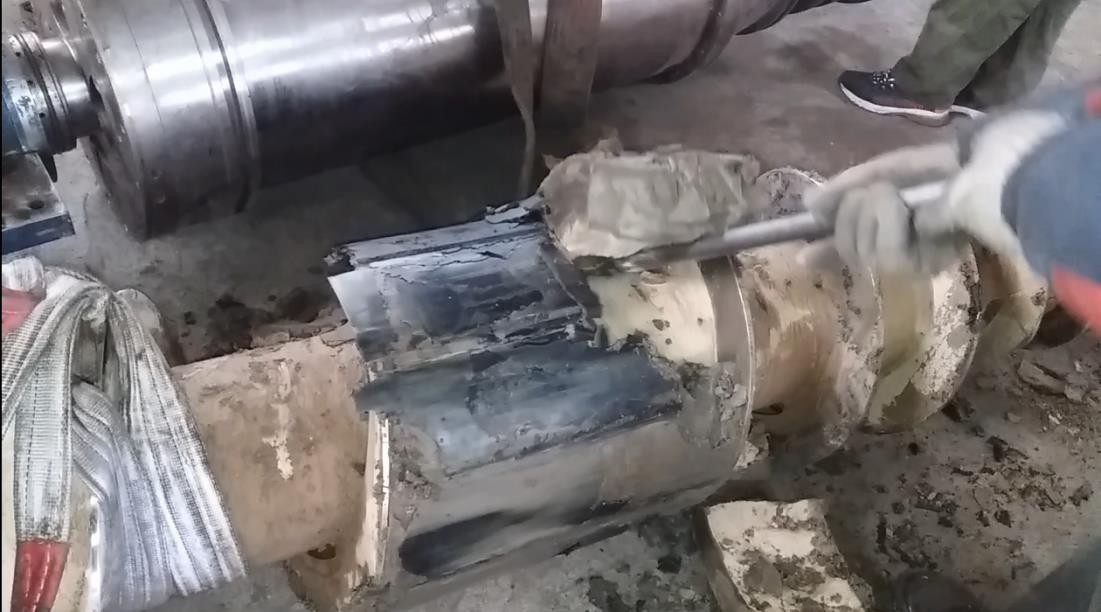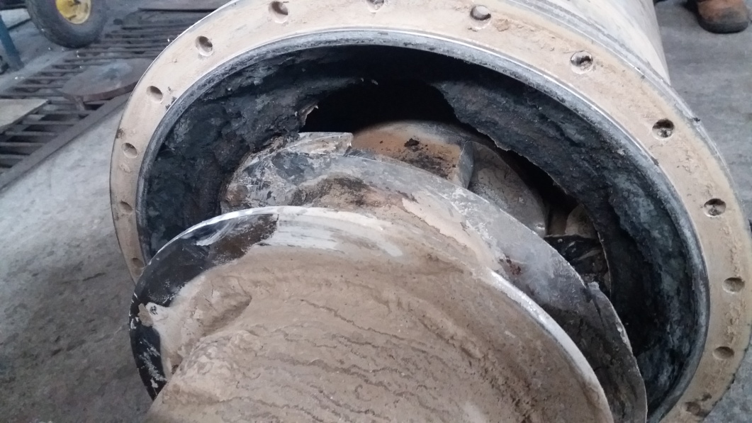 經過拆解離心機堵料非常嚴重,已經不是靠清洗反沖能夠解決的。