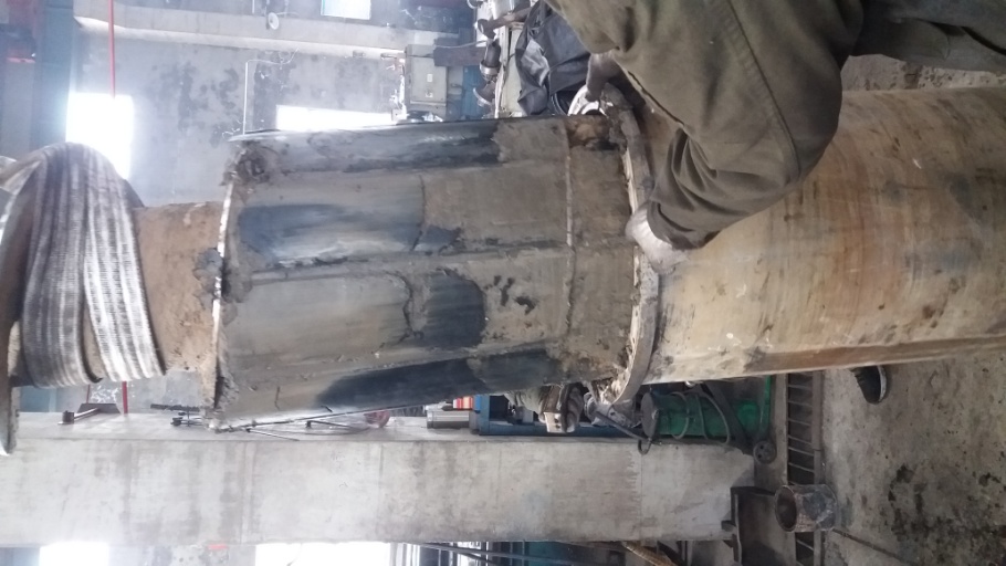 圖中可以看出,螺旋出泥口部位的螺旋葉片已經高度磨損